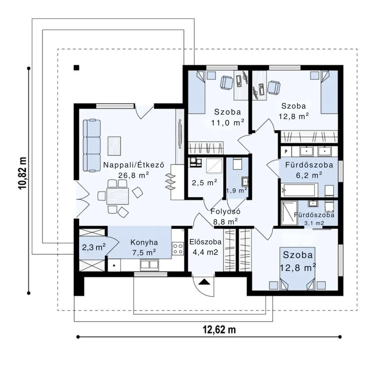 A helyiségek elrendezése és a négyzetméterek igény szerint díjmentesen módosítható, így teljesen az Ön elképzeléseihez tudjuk igazítani.
