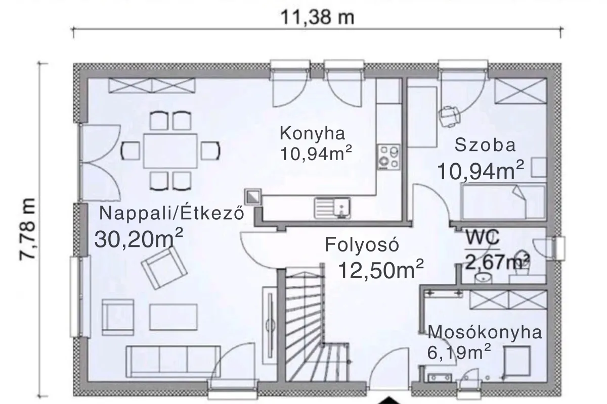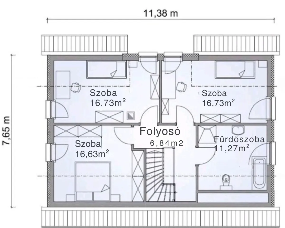 A helyiségek elrendezése és a négyzetméterek igény szerint díjmentesen módosítható, így teljesen az Ön elképzeléseihez tudjuk igazítani.