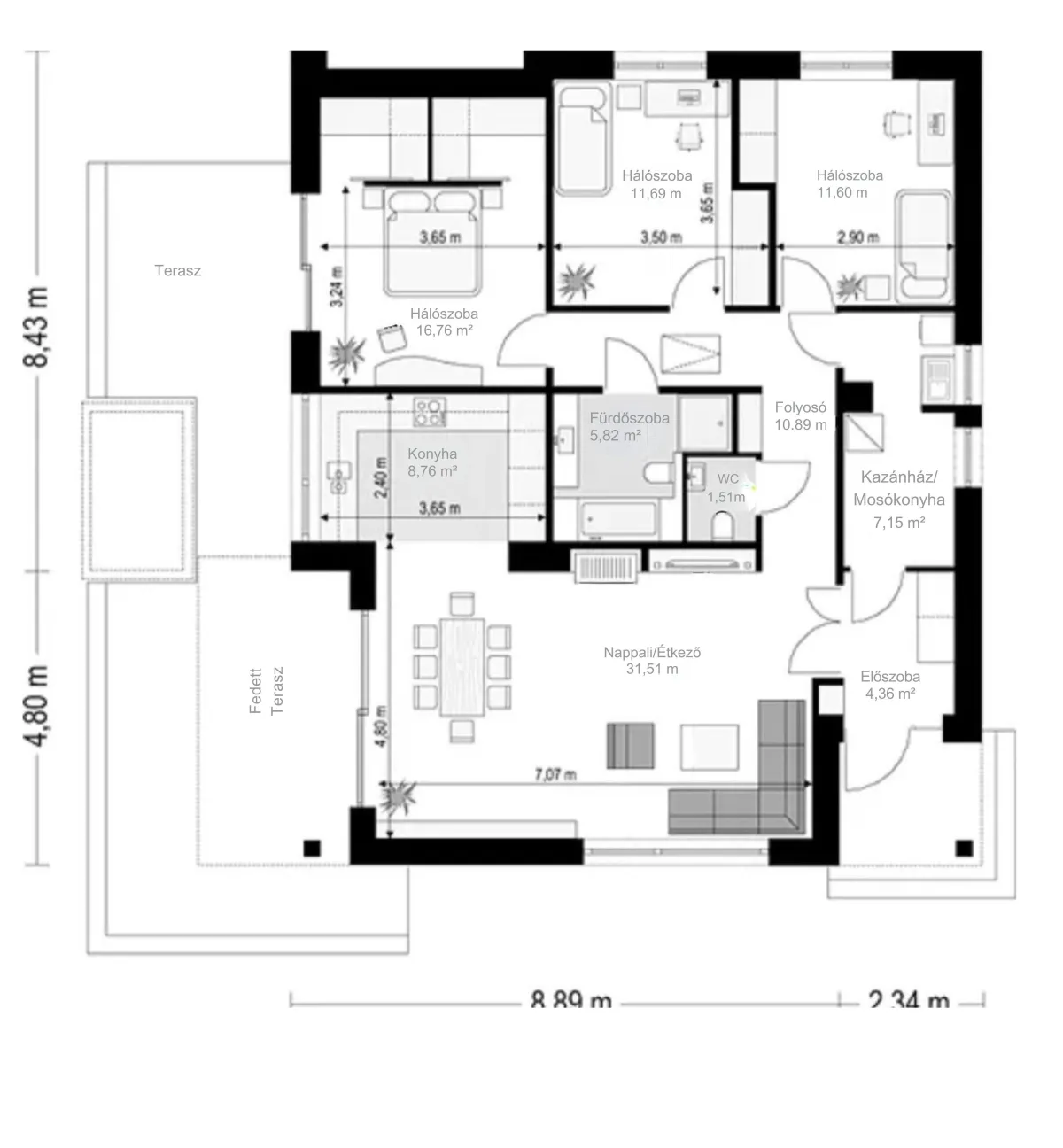 A helyiségek elrendezése és a négyzetméterek igény szerint díjmentesen módosítható, így teljesen az Ön elképzeléseihez tudjuk igazítani.