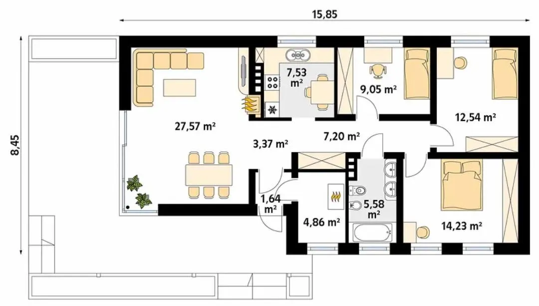 A helyiségek elrendezése és a négyzetméterek igény szerint díjmentesen módosítható, így teljesen az Ön elképzeléseihez tudjuk igazítani.