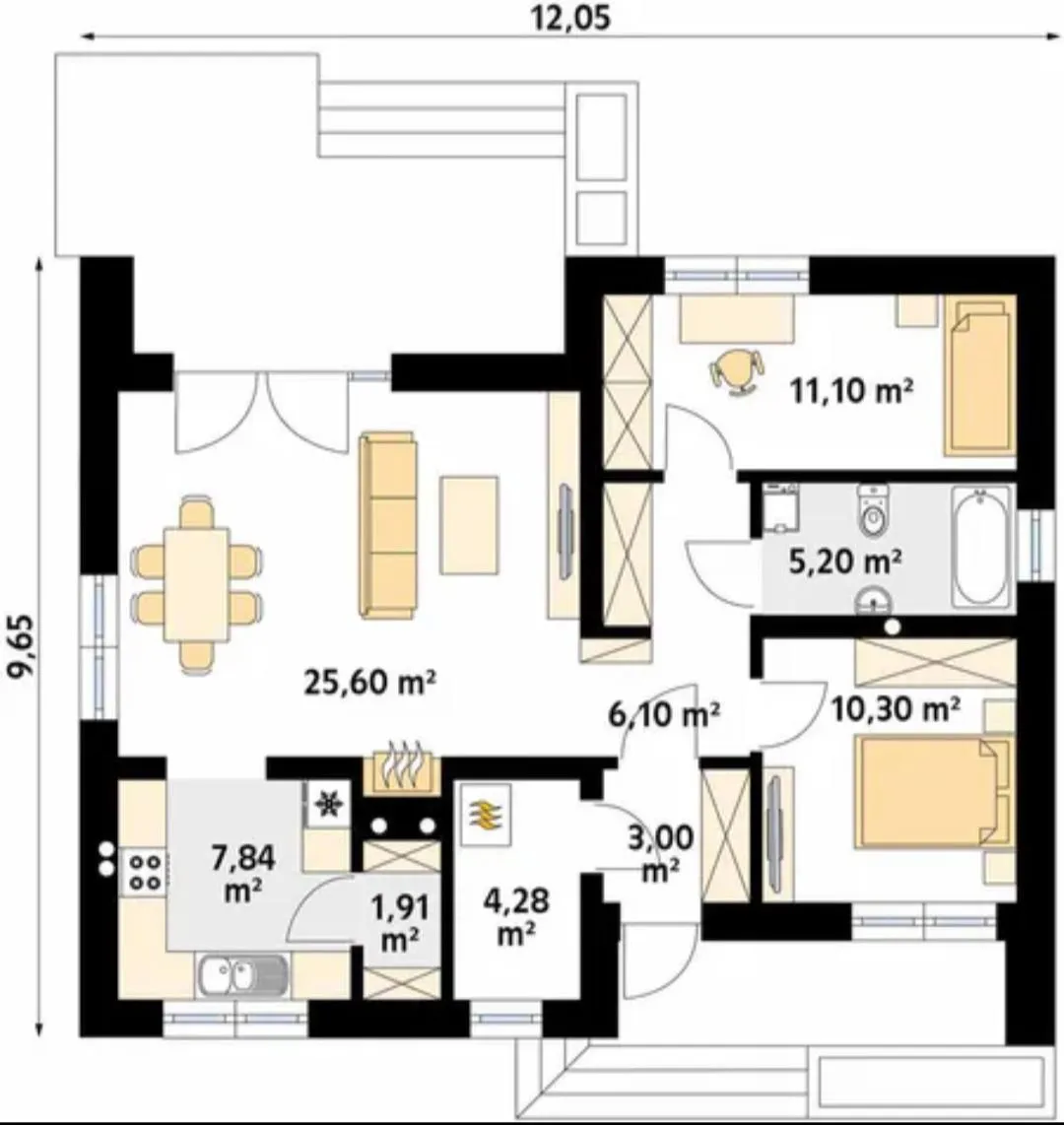 A helyiségek elrendezése és a négyzetméterek igény szerint díjmentesen módosítható, így teljesen az Ön elképzeléseihez tudjuk igazítani.