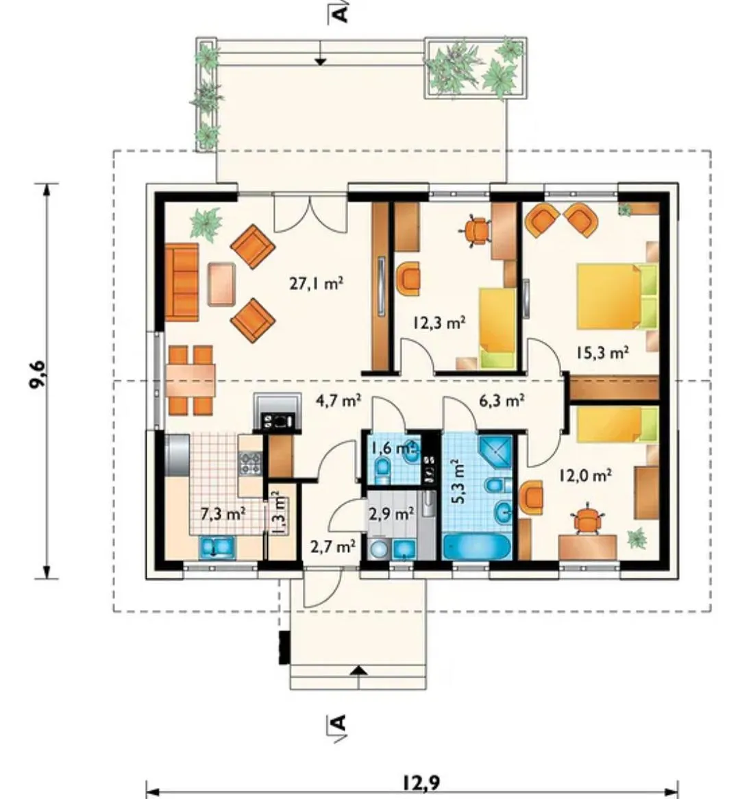 A helyiségek elrendezése és a négyzetméterek igény szerint díjmentesen módosítható, így teljesen az Ön elképzeléseihez tudjuk igazítani.