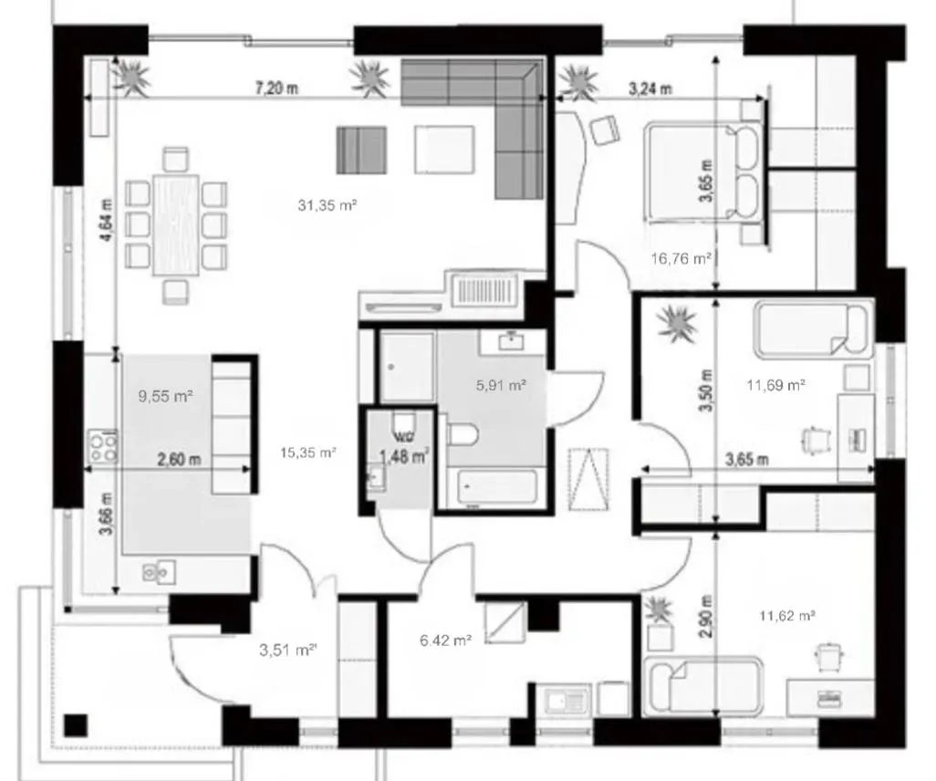 A helyiségek elrendezése és a négyzetméterek igény szerint díjmentesen módosítható, így teljesen az Ön elképzeléseihez tudjuk igazítani.