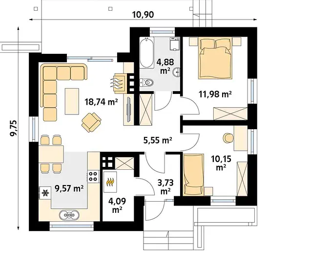 A helyiségek elrendezése és a négyzetméterek igény szerint díjmentesen módosítható, így teljesen az Ön elképzeléseihez tudjuk igazítani.