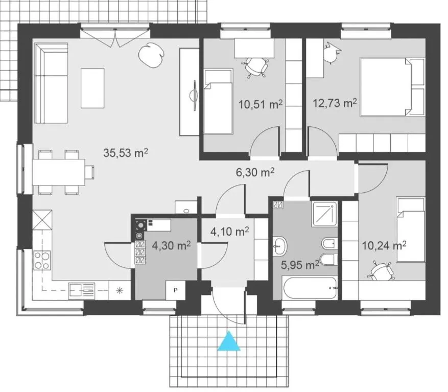 A helyiségek elrendezése és a négyzetméterek igény szerint díjmentesen módosítható, így teljesen az Ön elképzeléseihez tudjuk igazítani.