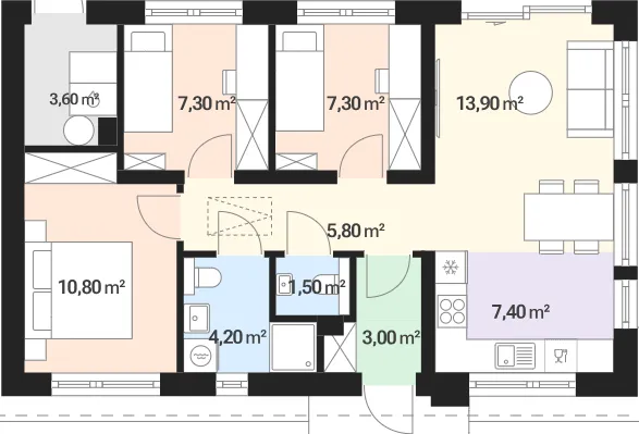 A helyiségek elrendezése és a négyzetméterek igény szerint díjmentesen módosítható, így teljesen az Ön elképzeléseihez tudjuk igazítani.