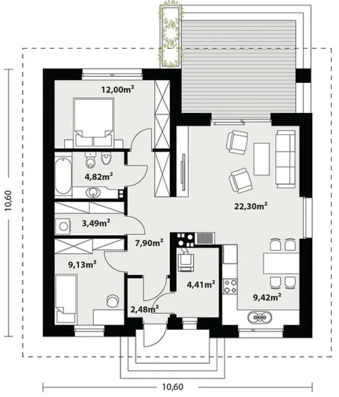 A helyiségek elrendezése és a négyzetméterek igény szerint díjmentesen módosítható, így teljesen az Ön elképzeléseihez tudjuk igazítani.